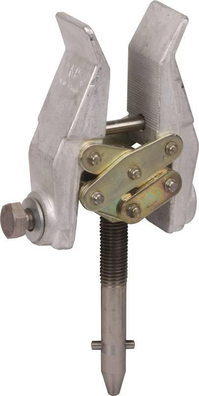 Phasenschraubklemme (parallele Führung der Klemmbacken) mit langer Schraubspindel und Querstift als phasenseitiges Anschlusselement nach DIN VDE 0683-100 (EN/IEC 61230) für die Schrägeinlage an Hochspannungs-Freileitungen zur Bestückung von Erdungs- und Kurzschließseilen. Mit Verdrehungsschutz Ausführung PK 2.