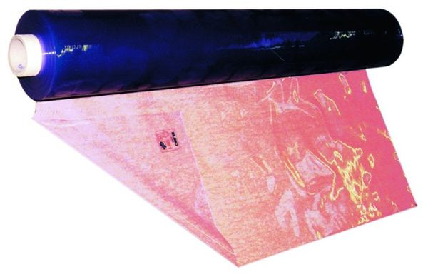 Abdecktuch aus Kunststoff nach DIN VDE 0680-1 mit VDE/GS - Zeichen für Nennspannungen bis 1000V zum Schutz gegen unbeabsichtigtes, direktes Berühren von spannungsführenden Teilen und zum Abdecken von benachbarten, unter Spannung stehenden Teilen. Länge: 50 m, Breite: 1350mm, Dicke: 0,5mm, Farbe: glasklar.