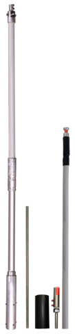 HVI light plus Leitung (Hochspannungsfeste isolierte Ableitung) im Stützrohr, zum Einhalten des Trennungsabstandes zu elektrisch leitenden Teilen nach DIN EN 62305-3 (VDE 0185-305-3), um gefährliche Überschläge zwischen Teilen des Äußeren Blitzschutzes und inneren, leitfähigen Teilen (Elektroanlage, Rohrleitungen, usw.) zu verhindern. Um Gleitentladungen zu vermeiden, ist die HVI light plus Leitung mit einem äußeren Spezialmantel ausgestattet, der es ermöglicht, hohe Blitz-Impulsspannungen gegen ein Bezugspotential ab zusteuern. Ausführung HVI light plus Leitung (grau), mit innenliegendem Endverschluss im Stützrohr (Länge 2680 mm) mit Fangspitze (D10 mm Länge 1000 mm) und einem Erdanschlusselement. Äquivalenter Trennungsabstand s = 60 cm (in Luft), s = 120 cm (fester Baustoff).