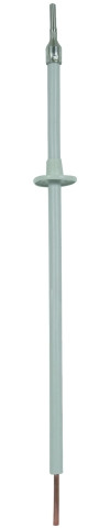 CUI-Leitung zur Vermeidung von Berührungsspannung an der Ableitung, nach DIN EN 62305-3 (VDE 0185-305-3). Mit einem Innenleiter aus Kupfer (D 8 mm) und eine hochspannungsfeste Isolierung (Stoßspannungsfestigkeit von 100 kV (1,2/50 µs)) sowie die Vermeidung eines Gleitüberschlages (auch bei Regen). Ausführung mit Anschlusskopf aus NIRO, Länge 3,5 m.