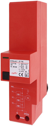 | Kurzbeschreibung | Kombiableiter Typ 1+Typ 2 DEHNventil ZP für dreiphasige TN-C-Systeme |