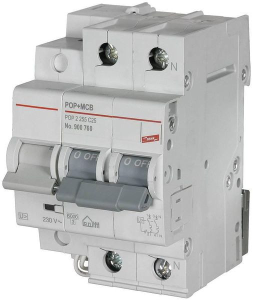 | Kurzbeschreibung | Schutzeinrichtungen fuer Ueberspannungen fuer Leitungsschutzschalter 2-polig C25 A |