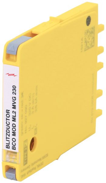 Überspannungs-Ableiter Schutzmodul in 6 mm Baubreite für BLITZDUCTORconnect mit Statusanzeige zum Schutz von 2 Adern mehradriger, erdpotentialfreier Signalschnittstellen mit Nennspannung 230 V AC. Erfüllt u. a. die Anforderungen für signaltechnische Anlagen in der Bahnindustrie (DB RIL 819.0808 konform).