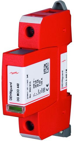 Einpoliger Überspannungsableiter DEHNguard S, Typ 2 nach EN 61643-11, bestehend aus Basisteil und gestecktem Schutzmodul. Hohe Gerätesicherheit durch Ableiterüberwachung mit Thermo-Dynamik-Control. Zum Schutz von Niederspannungs-Verbraucheranlagen vor Überspannungen. Zum Einsatz im Blitz-Schutzzonen-Konzept an den Schnittstellen 0B – 1 und höher.