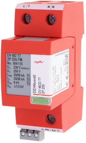 | Kurzbeschreibung | Kombi-Ableiter Typ1+2+3 DEHNventil M2 für einphasige TT- und TN-Systeme mit FM |