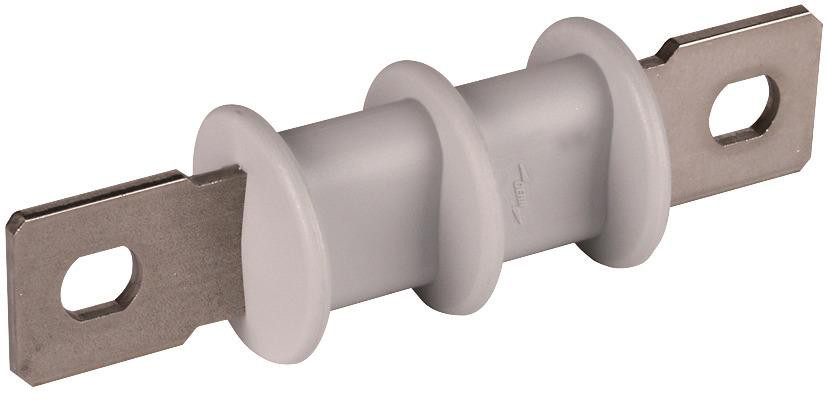 Kunststoffisolierte Schutzfunkenstrecke zum indirekten Anschluss eines Freileitungs-Dachständers an die äußere Blitzschutzanlage.