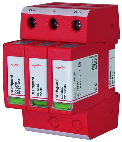 Mehrpoliger Überspannungsableiter DEHNguard M YPV SCI, Typ 2 nach EN 61643-31 mit dreistufiger DC-Schaltvorrichtung, bestehend aus Basisteil und gesteckten Schutzmodulen. Kombinierte Abtrenn- und Kurzschließvorrichtung mit sicherer elektrischer Trennung im Schutzmodul. Zum Schutz von Niederspannungs-Verbraucheranlagen vor Überspannungen. Zum Einsatz gemäß IEC 60364-7-712:2002-05 (Errichten von Photovoltaik-Versorgungssystemen).