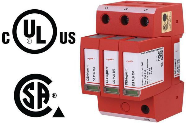 Mehrpoliger Überspannungsableiter DEHNguard MU, Open-Type 1 SPD nach ANSI/UL 1449 bestehend aus Basisteil und gesteckten Schutzmodulen. Hohe Gerätesicherheit durch Ableiterüberwachung mit Thermo-Dynamik-Control. Ermöglicht Endgeräteschutz. Zum Schutz von 3 Phase Delta Systemen.