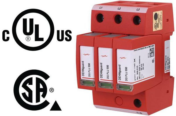 Mehrpoliger Überspannungsableiter DEHNguard MU, Open-Type 1 SPD nach ANSI/UL 1449. bestehend aus Basisteil und gesteckten Schutzmodulen. Hohe Gerätesicherheit durch Ableiterüberwachung mit Thermo-Dynamik-Control. Ermöglicht Endgeräteschutz. Zum Schutz von 3 Phase Delta Systemen.