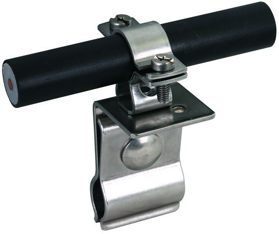 Dachleitungshalter mit Zweischraubenüberleger aus NIRO zum Verlegung der HVI Leitung auf Metalldächern mit Rundstehfalz.