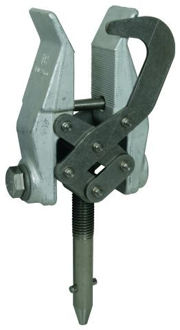 Phasenschraubklemme (parallele Führung der Klemmbacken mit Sicherungsbügel) mit langer Schraubspindel und Querstift als phasenseitiges Anschlusselement nach DIN VDE 0683-100 (EN/IEC 61230) für die Schrägeinlage an Hochspannungs-Freileitungen zur Bestückung von Erdungs- und Kurzschließseilen. Mit Verdrehungsschutz Ausführung PK 2.