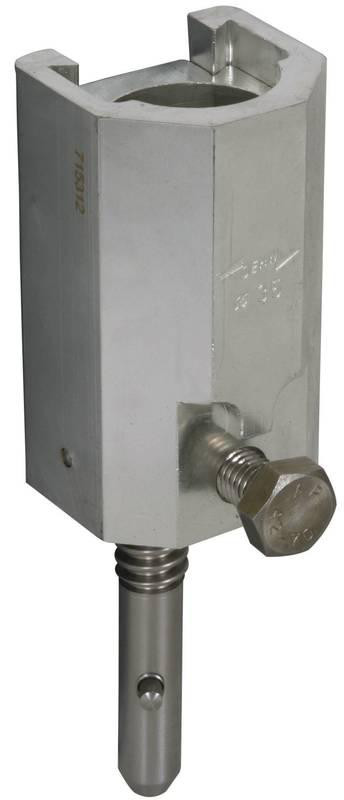 Rundbolzenklemme mit Spindel mit Querstift als phasenseitiges Anschlusselement nach DIN VDE 0683-100 (EN/IEC 61230) zur phasenseitigen Bestückung von Erdungs- und Kurzschließseilen. Mit Verdrehungsschutz Ausführung PK 1.