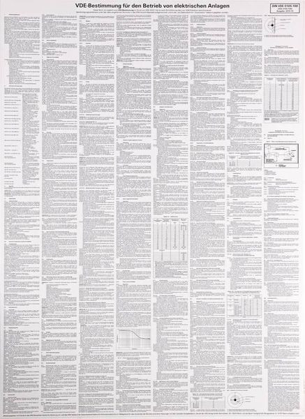 Hinweisschild zum Aushang: ""VDE-Bestimmungen für den Betrieb von elektrischen Anlagen"" nach DIN VDE 0105-100.