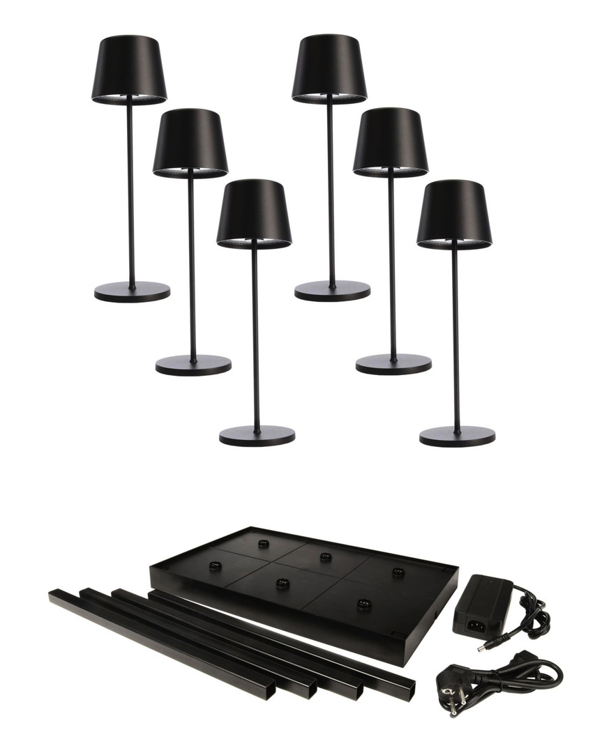 Deko-Light, Akkuleuchte, Set Canis Gastro M Schwarz , 270 lm, Eingangsspannung: 3.7 V/DC, Aluminium, Matt, IP 65