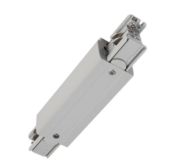 Deko-Light, 3-Phasen Schienensystem, D Line elektr. Längsverbinder mit Einspeisem. li-re, Hellgrau, Fenstergrau RAL 7040, Eingangsspannung: 220-440 V/AC, Länge: 166 mm, Breite: 35 mm, Höhe: 35.5 mm, IP 20