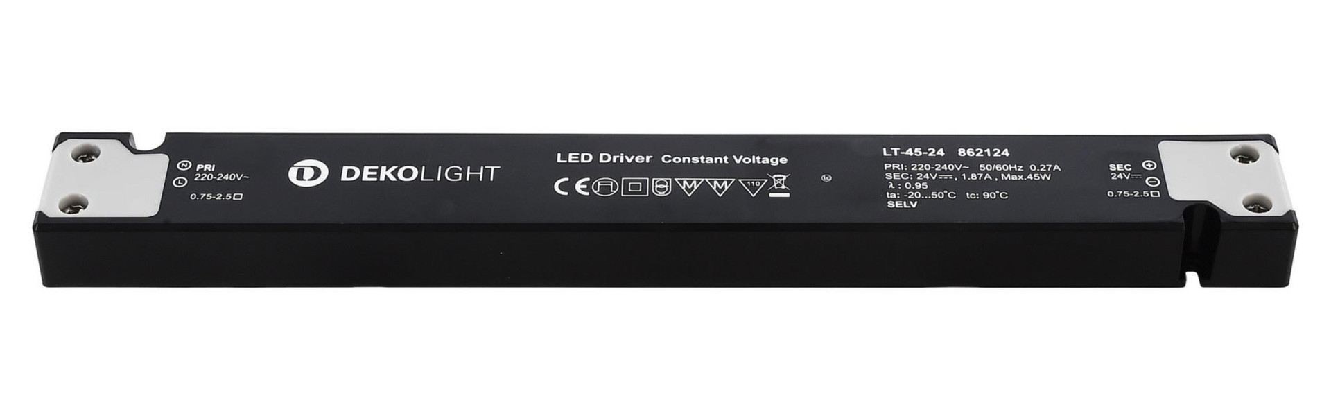 Deko-Light, Netzgerät (CV, DC), LONG-FLAT, CV, LT-45-24, Spannungskonstant, 45.0 W, Eingangsspannung: 220-240 V/AC, Ausgangsspannung: 24 V/DC, IP 20