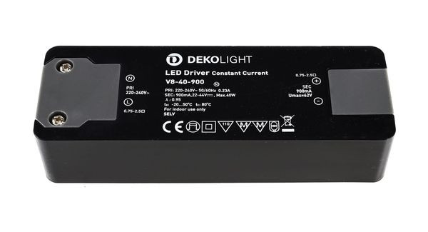 Deko-Light, Netzgerät (CC, DC), BASIC, CC, V8-40-900/40W, Stromkonstant, 19,0-40,0 W, Eingangsspannung: 220-240 V/AC, Ausgangsspannung: 22-44 V/DC, IP 20
