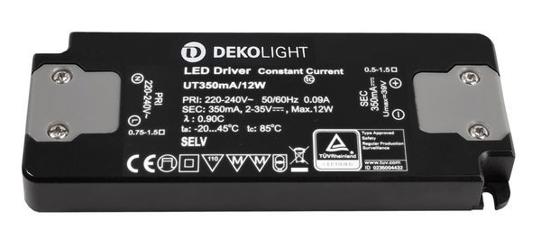 Deko-Light, Netzgerät (CC, DC), FLAT, CC, UT350mA/12W, Stromkonstant, 0,7-12,0 W, Eingangsspannung: 220-240 V/AC, Ausgangsspannung: 2-35 V/DC, IP 20