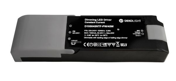 Deko-Light, Netzgerät (CC, DC) dimmbar, QUICK, CC, 1050mA, 25-40V, 45W, Stromkonstant, Dimmbar: Ja, Phasenabschnittsdimmer, 23,1-44,1 W, Eingangsspannung: 220-240 V/AC, Ausgangsspannung: 22-42 V/DC, IP 20