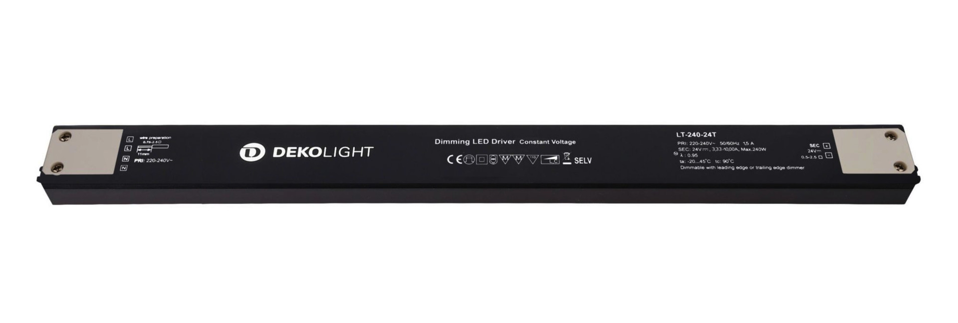 Deko-Light, Netzgerät (CV, DC) dimmbar, Long-Flat, DIM, CV, 24V 80-240W, Spannungskonstant, Dimmbar: Ja, Phasenanschnittsdimmer, Phasenabschnittsdimmer, 80,0-240,0 W, Eingangsspannung: 220-240 V/AC, Ausgangsspannung: 24 V/DC, IP 20