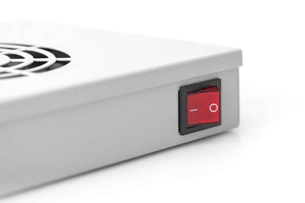 Umgangssprachlich auch Einschublüfter genannt, lassen sich die Lüftereinheiten statt unter dem Dach, variabel im 19"-Raster eines jeden Netzwerk- oder Serverschrankes montieren. Im Lieferumfang sind Montagwinkel zur einfachen Befestigung im 19"-Profil beigelegt. Ausgestattet mit einem EIN-/AUS-Schalter sowie einem regalbarem Thermostat bietet jede Lüftereinheit die beste Einsatzbereitschaft nach individuellen Bedürfnissen. Das Modell ist erhältlich in den Standardfarben Grau (RAL 7035), sowie Schwarz (RAL 9005), wahlweise mit zwei oder vier Lüftern ausgerüstet.