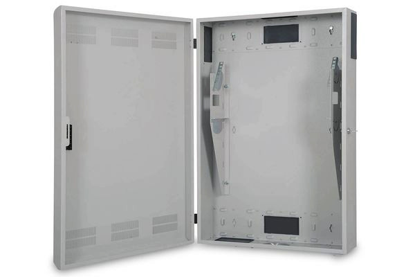 Das 483 mm (19“)-Wandgehäuse der Slim Serie erlaubt eine horizontale oder vertikale Montage von 3HE mit zwei unabhängigen Montagebereichen für Patch Panels, Switche, Router oder andere 483 mm (19“)-Aktivkomponenten.