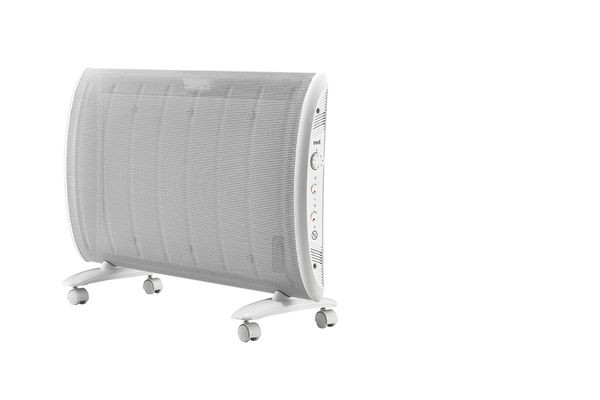 Wärmewellenheizgerät mit mechanischem Thermostat, Aufstellung freistehend oder auf Rollen, Mecanitheizplatte, Frostschutzfunktion, Überhitzungsschutz und Kontroll-Leuchte für Heizbetrieb, Farbe weiß, Spritzwasserschutz IP 24, BEAB Prüfzeichen. 3 Leistungsstufen mit 0,5/1,0/1,5 kW. Dieses Produkt ist nur für gut isolierte Räume oder für den gelegentlichen Gebrauch geeignet.