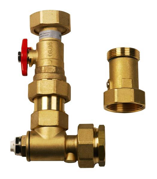 Pumpenbaugruppe DN 25 zum direkten Anschluss der Warmwasserumwälzpumpe (Pumpe nicht im Lieferumfang) an der Rückseite des Warmwasserspeichers an den KPV 25 bzw. DDV 32. Bestehend aus: Winkelverschraubung mit Handentlüfter, Einbaumöglichkeit für Umwälzpumpe mit zwei Kugelhähnen und Schwerkraftbremse.