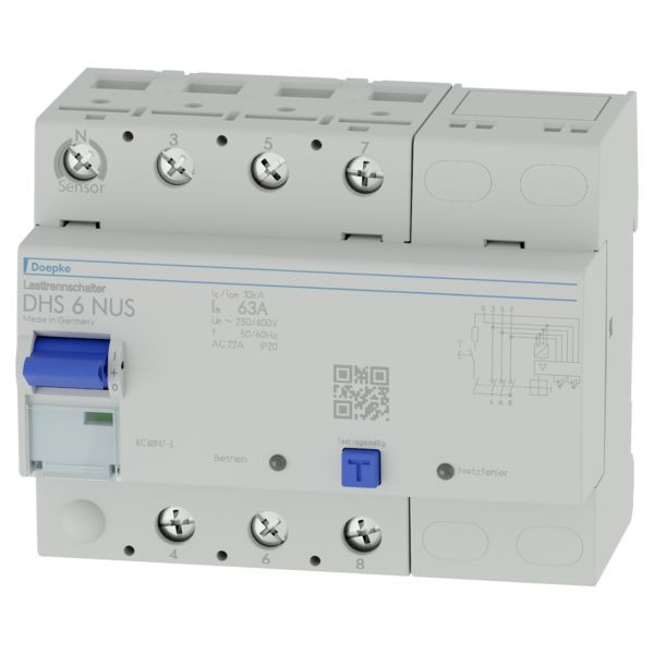 | Kurzbeschreibung | Lasttrennschalter kompakt, 63A, 4 Schließer, N links, Netzüberwachung mit N-Sensor |