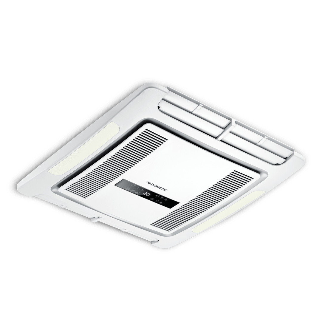 Luftverteilerbox, elektrisches Bedienpanel, LED-Beleuchtung - perfekt geeignet für Reisemobile, Wohnwagen und Van Dieses elegante, besonders flache Luftverteilergerät fügt sich nahtlos in den Innenraum moderner Wohnmobile ein. Es bewegt die Luft geräuscharm und effizient in zwei Richtungen: nach vorne und nach hinten. Nutzen Sie das bündig in die Geräteoberfläche integrierte Touch-Bedienpanel, um die gewünschte Temperatur und die Gebläsestufe einzustellen. So sind Ihnen unvergessliche Momente in Ihrem rollenden Zuhause sicher. Die integrierten LEDs erzeugen ein warmes und sanftes Umgebungslicht.