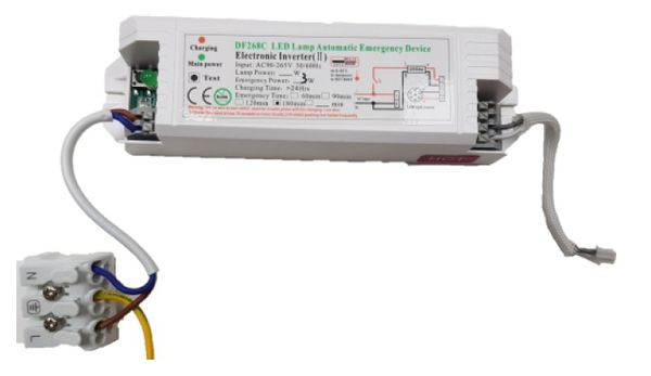 Akkukit mit Selbsttest Funktion Konstant Strom Ausgangsgerät 42 mA Spannungsbereich 10-60 Volt Li-ion Akku LED Leistung im Notlichtbetrieb mit LUNApioneer Serie: 4,9W Kreis 8 Stunden @ 1,5 Watt 20W Kreis 3 Stunden @ 0,6 Watt