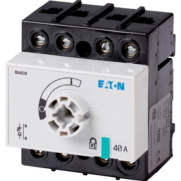 | Kurzbeschreibung | Lasttrennschalter, DCM, 40 A, 3P + N (nicht schaltbar), Stopp-Funktion optional, ohne Drehgriffe und Antriebswelle, Anschluss vertikal |