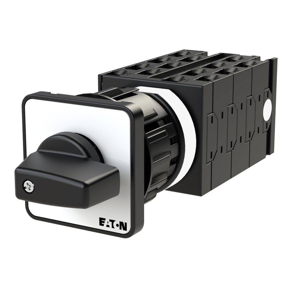 Stufenschalter, Sortiment: Steuerschalter, Normen und Bestimmungen: IEC/EN 60947, VDE 0660, IEC/EN 60204, CSA, UL, Lasttrennschalter nach IEC/EN 60947-3, Typkenner: T0, mit schwarzem Knebel und Frontschild, Kontakte: 14, Schutzart: Front IP65, Bauform: Zentraleinbau, Schaltwinkel: 45 °, Schaltverhalten: rastend, mit 0-Stellung, 7 Baueinheit(en), Bemessungsdauerstrom: Iu= 20 A, Frontschild: 0-7