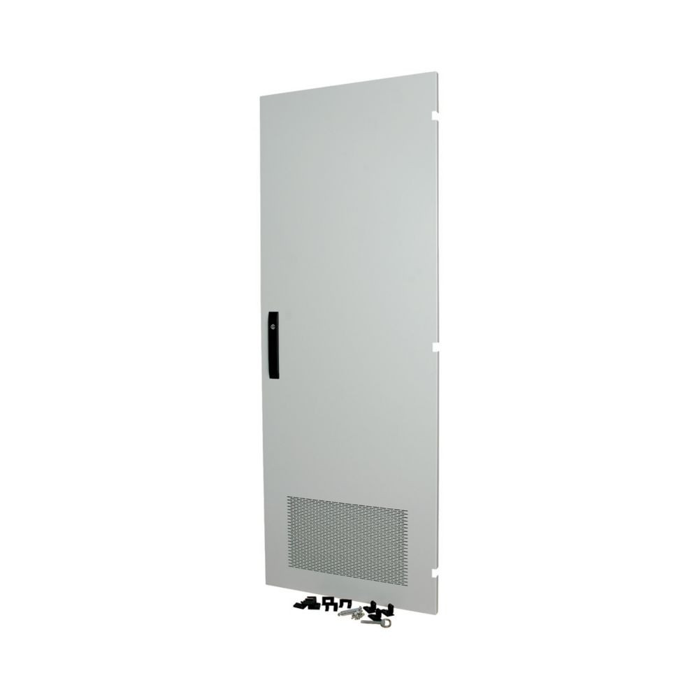 Feldtür geschlossen, mit der Breite von 592mm und der Höhe von 1625mm, Stahlblech, pulverbeschichtet, RAL7035, Montage rechts, belüftet, IP31, Lüftungsgitter