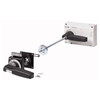 Türkupplungsdrehgriff mit Drehantrieb sowie Zusatzdrehgriff am Schalter mit Bedienungsweise Bewusste Handlung/Deliberate Action. Verlängerungsachse NZM3/4-XV6 für Einbautiefe 600mm. Mit schwarzem Türkupplungsdrehgriff und Türverriegelung. Abschließbar am Schalter mit bis zu 3 Vorhängeschlössern in 0-Stellung. Außenwarnschild/Bezeichnungsschild in Deutsch/Englisch. Alternativ Schilder in anderen Sprachen oder individuellem Text einclipsbar. Schwarz-gelber Blitzpfeil. Verwendbar für: NZM4(-4), N4(-4), N(S)4(-4). Für erhöhten Berührungsschutz auf der Einspeiseseite IP2X Fingerschutz bestellen.