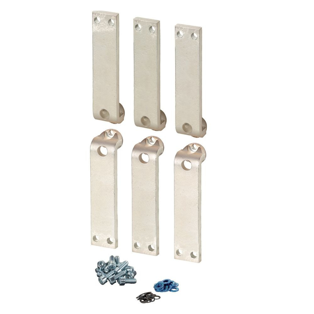 Zubehör, Frontanschlüsse, Dieser Anschlusssatz wird mit vorderen L-förmigen Klemmen für den Anschluss an den Schutzschalter oder die Kassette geliefert. Der Schutzschalter kann direkt mit CU-Schienen an der rückseitigen Flanschverbindung angeschlossen werden. Bei Bedarf können die optionalen Frontklemmen installiert werden, bevor der Schutzschalter im Gehäuse installiert wird. Ermöglicht die abschließende Verbindung zum Schutzschalter von vorne., Bemessungsstrom In 630–1600 A, Pole 4, Verwendbar für IZMX40…3…08W, IZMX40…3…10W, IZMX40…3…12W, IZMX40…3…16W, INX40…3…08W, INX40…3…10W, INX40…3…12W, INX40…3…16W