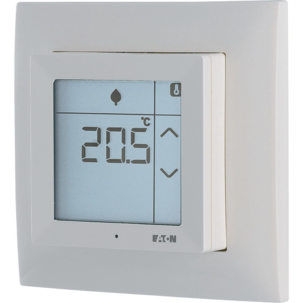Room Controller Touch komplett mit Rahmen, weiß glänzend, eignet sich dank des Temperatur- und Feuchtesensors zur Überwachung und Steuerung des Raumklimas, entweder alleine oder zusammen mit einem intelligenten Gerät. Die Bedienung erfolgt durch das Touch-Display mit Hintergrundbeleuchtung. Der benutzerprogrammierbare Wochen-Programm-Timer und 4 Betriebsarten bieten ein Höchstmaß an Flexibilität, um die spezifischen Bedürfnisse zu erfüllen. Die Bodentemperaturregelung wird über einen optionalen externen verdrahteten Bodentemperaturfühler (PT1000) unterstützt. Zwei optionale Touch-Tasten auf dem Display stehen für die Steuerung anderer xComfort Funktionen / Aktoren zur Verfügung