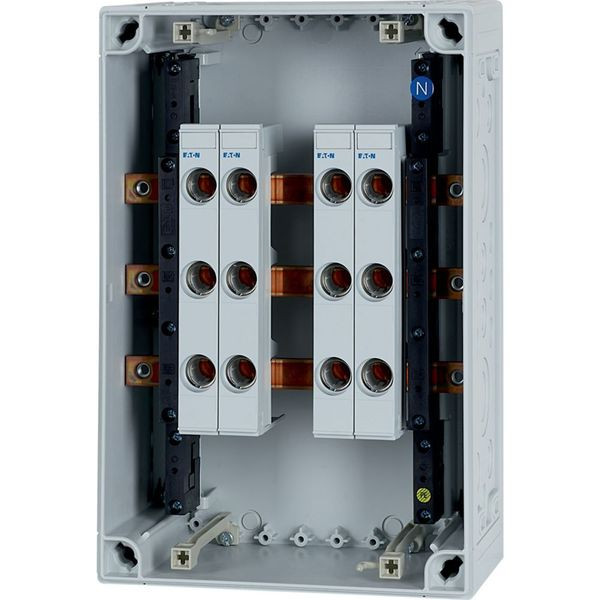 | Kurzbeschreibung | D02 Gehäuse mit 4x D02-Reiter-Sicherungssockel, MB 250 A, 3-polig |