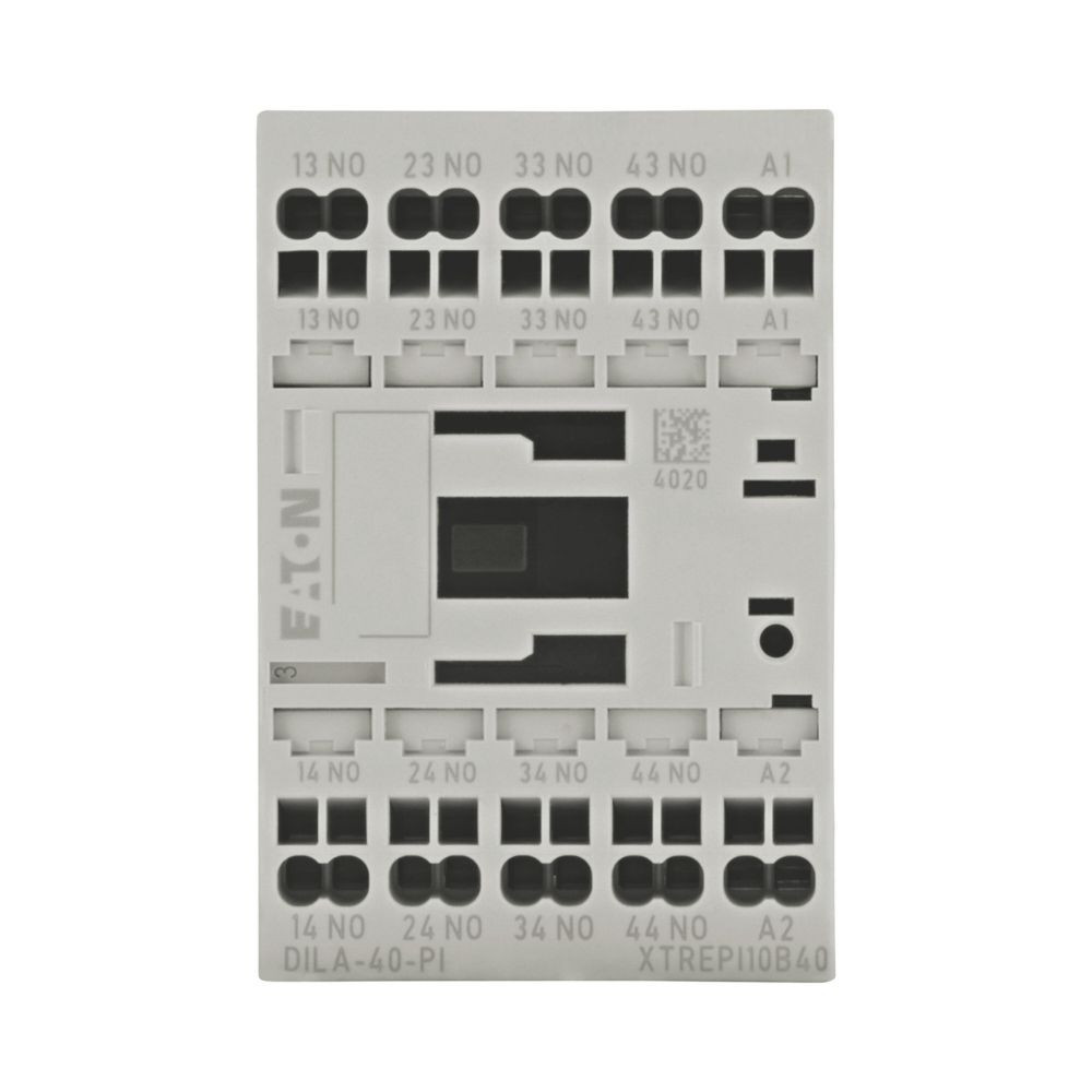 Hilfsschütz, Sortiment: DILA Relais, Anwendung: Hilfsschütze, Beschreibung: Grundgeräte mit positiven Betriebskontakten, Anschlusstechnik: Push-in-Klemmen, Bemessungsbetriebsstrom AC-15 220 V 230 V 240 V: Ie= 4 A, 380 V 400 V 415 V: Ie= 4 A, Kontakte S = Schließer: 4 S, Codenummer und Version der Kombination Unterscheidungsnummer: 40E, Kombinierbar mit Hilfsschaltermodul: DILA-XHI(V)…-PI, Betätigungsspannung: 42 V 50 Hz, 48 V 60 Hz, Stromart AC/DC: Wechselstrombetätigung, Schutzart: IP20, Hinweise: Kontaktnummern gemäß EN 50011, Markierungen Spulenanschluss gemäß EN 50005, Normen und Bestimmungen: IEC/EN 60947, EN 60947-5-1