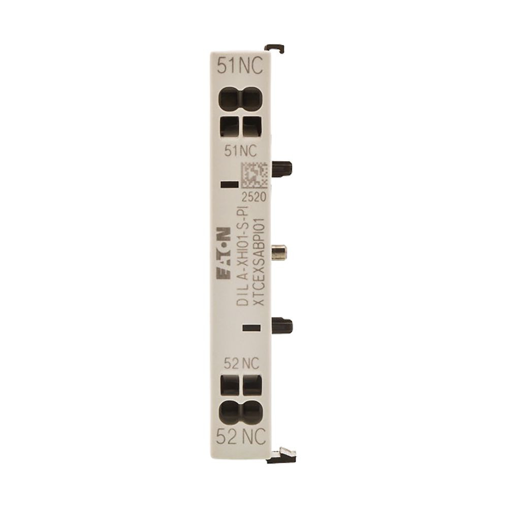 Hilfsschalterbaustein, mit zwangsgeführten Kontakten, Funktion: für Standardanwendungen, 1-polig, Anschlusstechnik: Push-in-Klemmen, Ith 16 A, Bemessungsbetriebsstrom AC-15 220 V 230 V 240 V: Ie= 4 A, Bemessungsbetriebsstrom AC-15 380 V 400 V 415 V: Ie= 4 A, Kontakte Ö = Öffner: 1 Ö, Montagetyp: Seitenanbau, verwendbar für: DILA…-PI, DILM7…-PI, DILM9…-PI, DILM12…-PI, DILM15…-PI, DILMP20…-PI, Typ: Seitliche Hilfsschalterbestückung, Hinweise: Zwangsgeführte Kontakte, nach IEC/EN 60947-5-1 Anhang L, innerhalb der Hilfsschalterbausteine