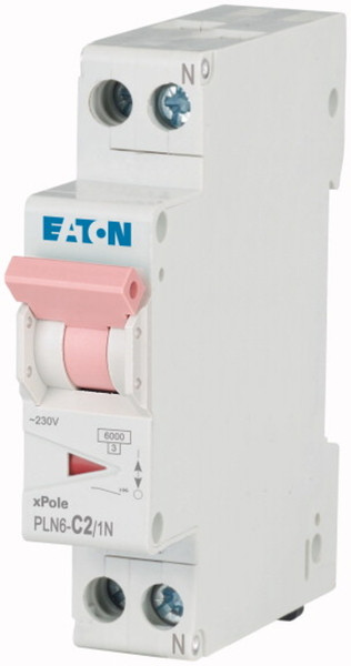 Leitungsschutzschalter, PLN6, 1-polig+N, Auslösecharakteristik: C, Bemessungsstrom In: 2 A, Bemessungsschaltvermögen nach IEC/EN 60898-1: 6 kA, Schaltgeräte für Wohn- und Zweckbau