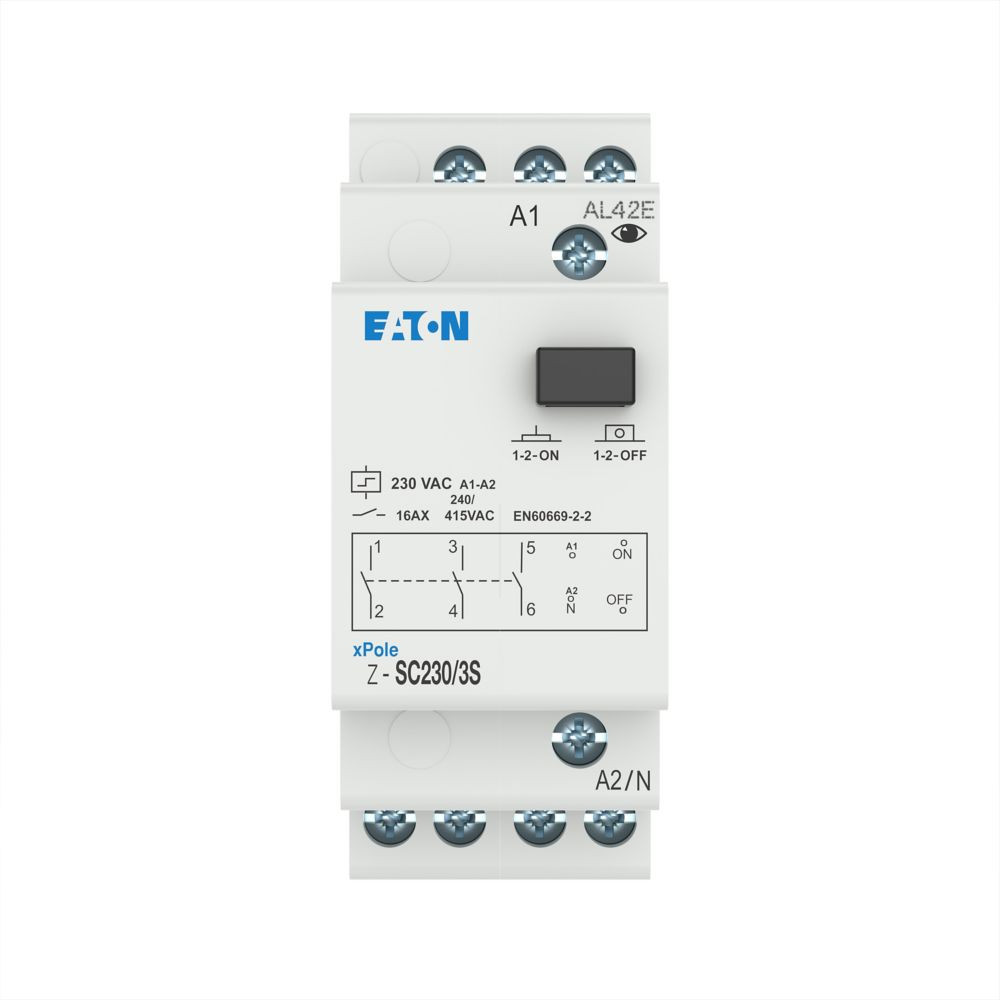 | Kurzbeschreibung | Impulse relay, central control, 230AC, 3NO, 16A, 50/60Hz, 2SU |
