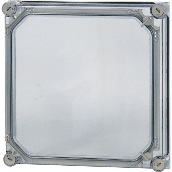 Abdeckung transparenter rauchgrau mit Tür, Schutzart IP65, patentierter Deckelverschluss mit integriertem Überdruckausgleich, plombierbare Deckelverschlüsse, durchgehende Schaumstoffdichtung, Einbautiefe bei Montageplatte=125mm, verwendbar für CI Unterteile E, X und V, Typ des Türverriegelungsmechanismus: manueller Betrieb