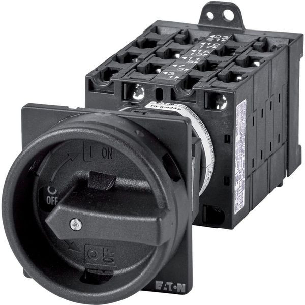Sonderschalter, Sortiment: Sonderschalter, Typkenner: T3, Stopp-Funktion: HALT-Funktion, mit schwarzem Drehgriff und Sperrkranz, Hinweise: Kundenspezifische Version gemäß Formular, Schutzart: Front IP65, Bauform: rückseitiger Einbau, Bemessungsbetriebsleistung AC-23A, 50 - 60 Hz 400 V: P = 15 kW, Bemessungsdauerstrom: Iu = 32 A, 6 Baueinheit(en), Normen und Bestimmungen: IEC/EN 60947, VDE 0660, IEC/EN 60204, Lasttrennschalter nach IEC/EN 60947-3