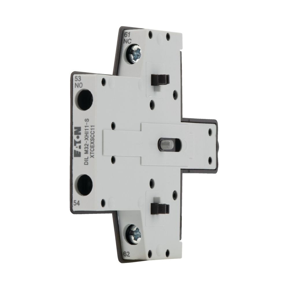 für Schütztyp DIL M7, M9, M12, M17, M25 und M32 Hilfsschalterbaustein, mit zwangsgeführten Kontakten, Funktion: für Standardanwendungen, 2-polig, Anschlusstechnik: Schraubklemmen, Bemessungsbetriebsstrom AC-15 220 V 230 V 240 V: Ie= 4 A, Bemessungsbetriebsstrom AC-15 380 V 400 V 415 V: Ie= 4 A, Kontakte S = Schließer: 1 S, Kontakte Ö = Öffner: 1 Ö, Montagetyp: Seitenanbau, verwendbar für: DILM17…, DILM25…, DILM32…, DILM38…, DILMF8…, DILMF11…, DILMF14…, DILMF17…, DILMF25…, DILMF32…, Typ: Seitliche Hilfsschalterbestückung