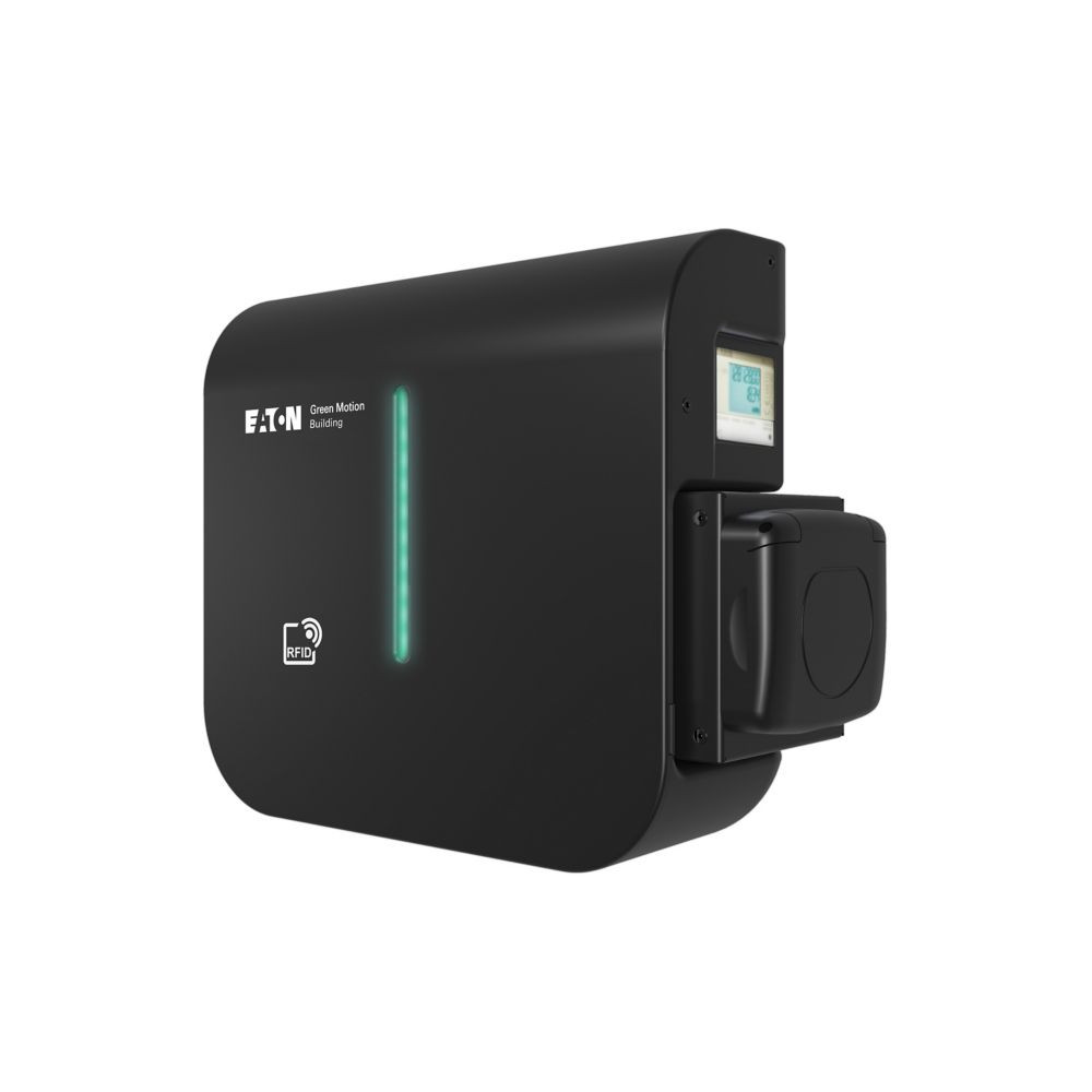 Eaton Green Motion Building, EV-Ladestation, Online, Einstellbare Ausgangsleistung 3,7 kW bis 22 kW (einphasig oder 3-phasig), Typ-2-Ladekabel mit Berührungsschutz, RFID, MID-Stromzähler