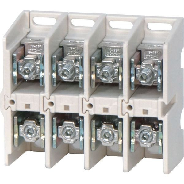 K Anschlussklemmen, für AL und CU, eine Seite rund, eine Seite flach, Bemessungsbetriebsstrom Ie = 160 A, Anzahl der Pole = 4, Anschlussquerschnitte: Kupfer-Rundkabel mehrdrähtig, Sektorkabel mehrdrähtig, Rundkabel eindrähtig, Sektorkabel eindrähtig und Rundkabel eindrähtig AI, Sektorkabel eindrähtig = 1x 16 bis 95 mm² Aluminium-Sektorkabel eindrähtig = 1x 35 bis 70 mm² Andere Seite: Kupferband 3 x 9 x 0,8 bis 6 x 9 x 0.8 oder Kupferschiene = 18 x 4 mm, Hinweise: Umbausätze von Bandanschluss in Kabelanschluss separat erhältlich, Klemmenabdeckung separat verfügbar
