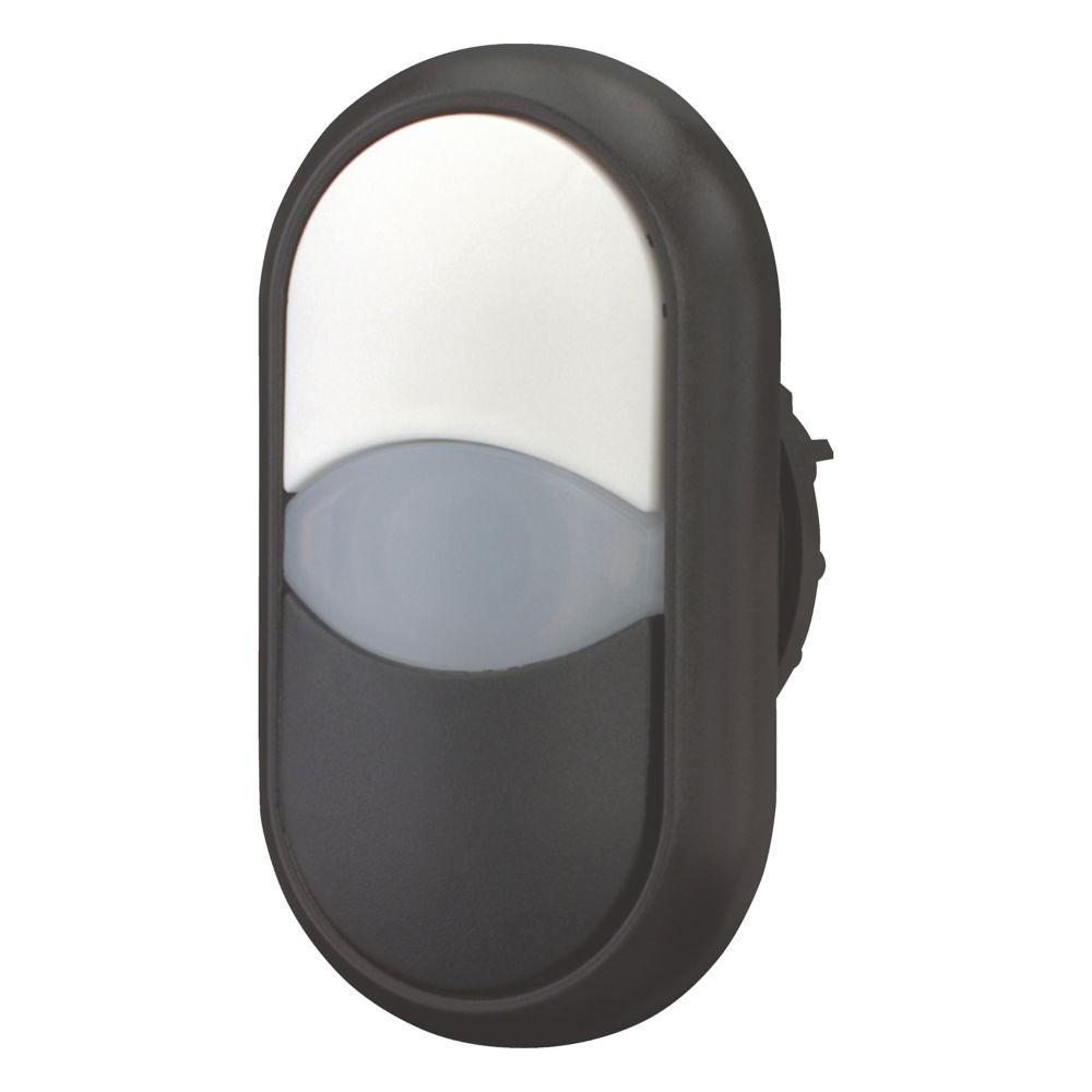Doppeldrucktaste, Sortiment: RMQ-Titan, Einzelgerät, Bauform: Tasten und Leuchtmelder vorstehend, tastend, Beschreibung: Vorsatzlinse weiß, Tastenplatte: weiß, schwarz, Tastenplatte unbeschriftet, Schutzart: IP66, Frontring Schwarz, Anbindung an SmartWire-DT: ja, mit RMQ-SWD-Anschaltungen, Frontabmessung: 29,7 x 54,7, Normen und Bestimmungen: IEC/EN 60947, VDE 0660