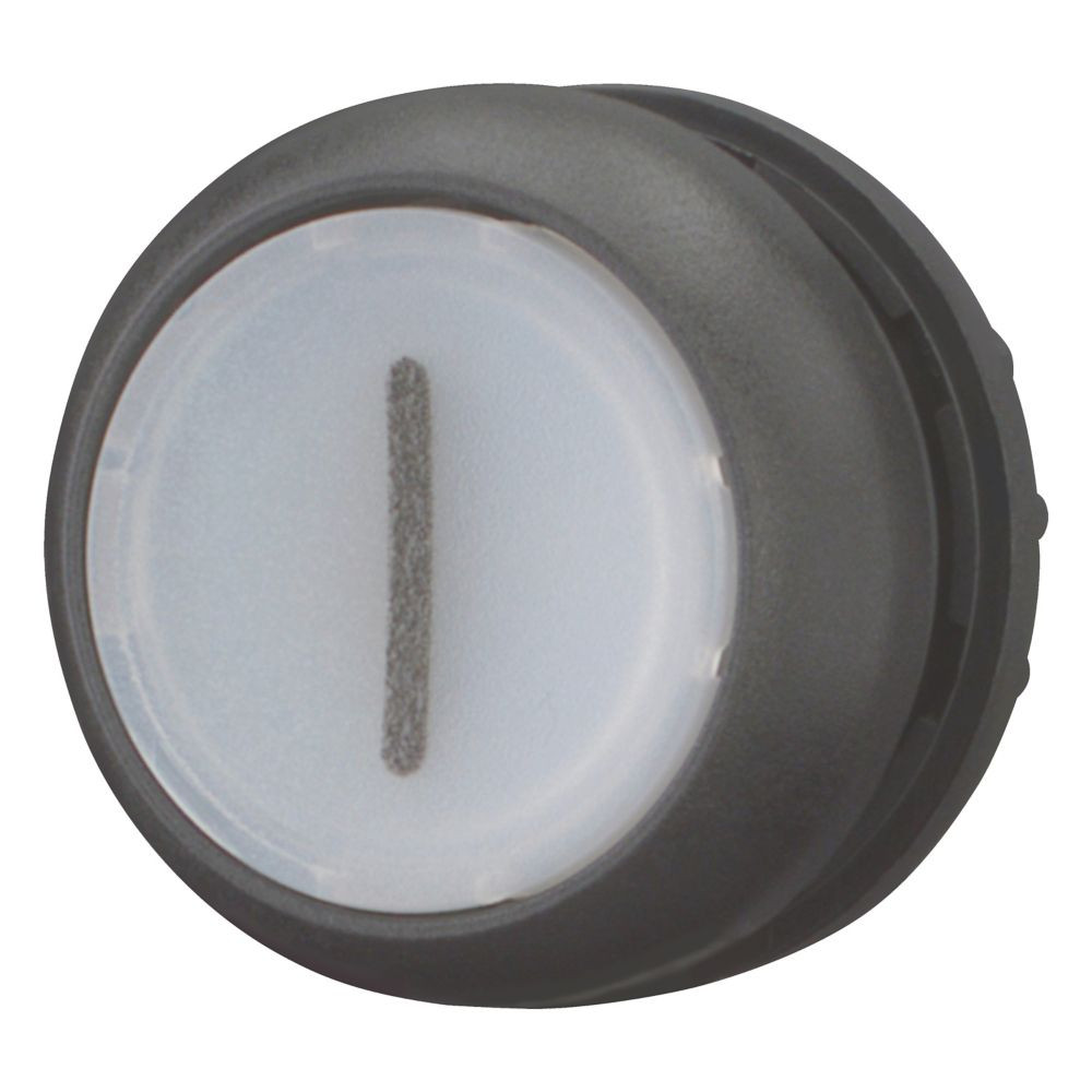 | Kurzbeschreibung | Leuchtdrucktaste, RMQ-Titan, bündig, rastend, weiß, beschriftet 1, Frontring Schwarz |