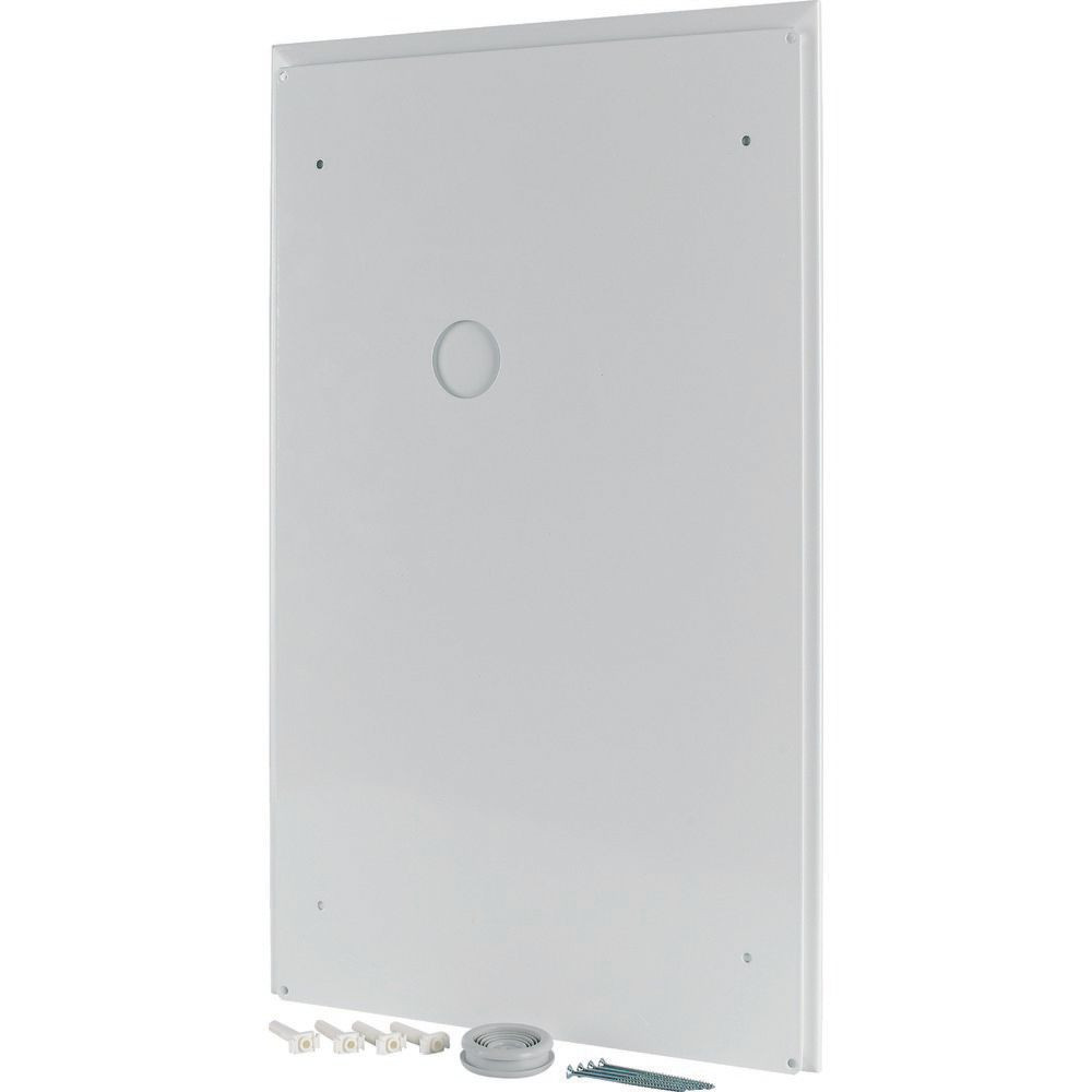 | Kurzbeschreibung | 3-reihiger Verputzschutz, Stahlblech, Pulverbeschichtung, mit Öffnung zum Einschalten des Leitungsschutzschalters, wiederverwendbar |